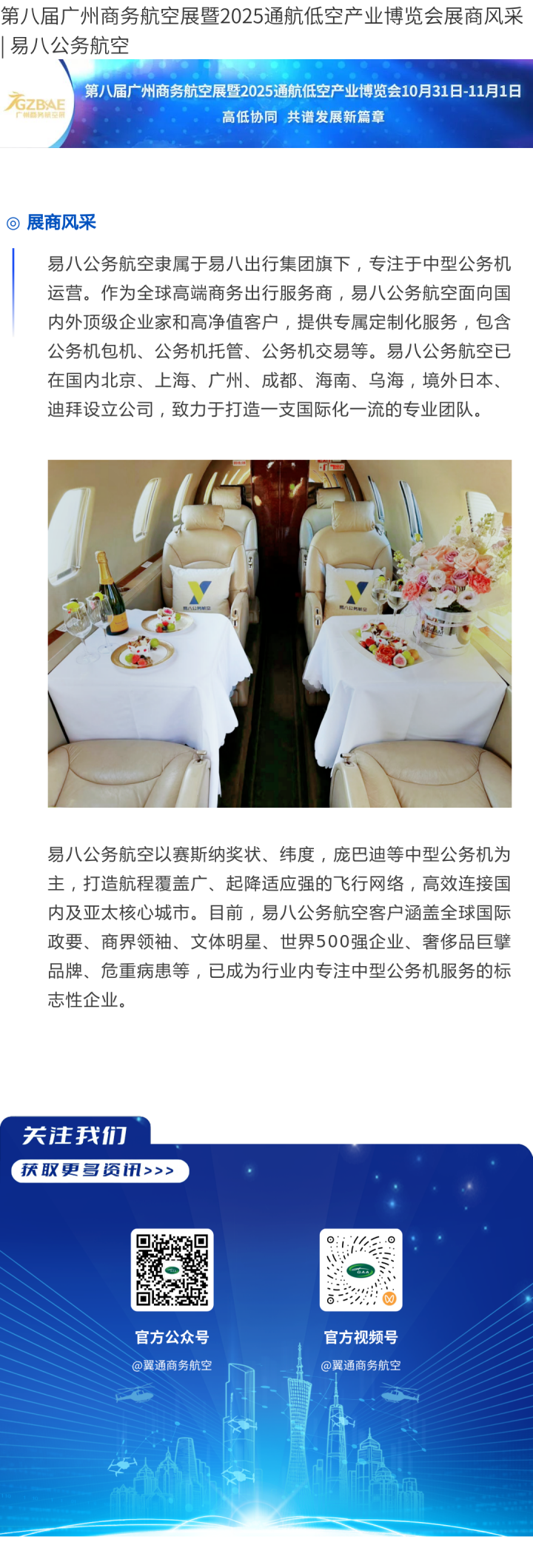 第八届广州商务航空展暨2025通航低空产业博览会展商风采 | 易八公务航空