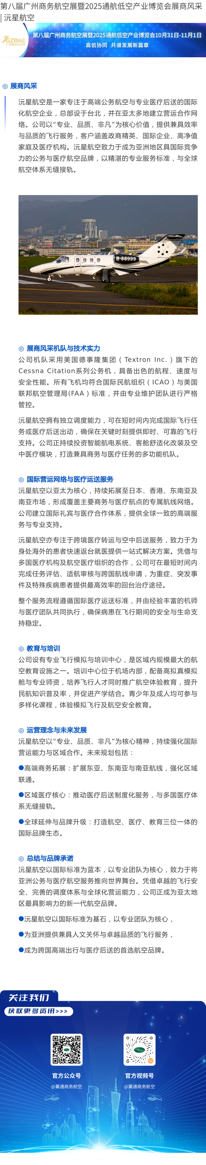 第八届广州商务航空展暨2025通航低空产业博览会展商风采 | 沅星航空