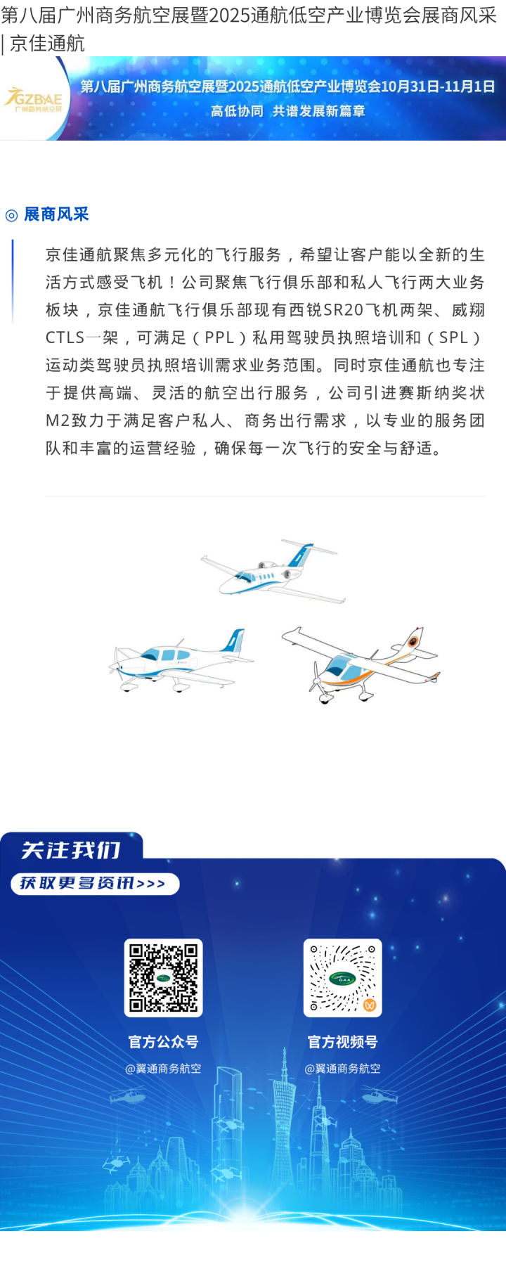 第八届广州商务航空展暨2025通航低空产业博览会展商风采 | 京佳通航