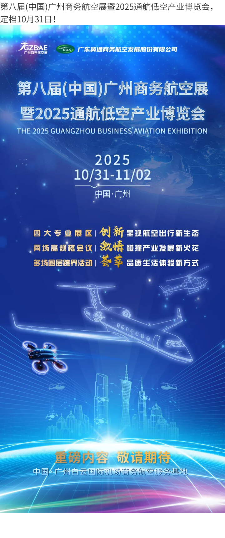 第八届(中国)广州商务航空展暨2025通航低空产业博览会,定档10月31日!